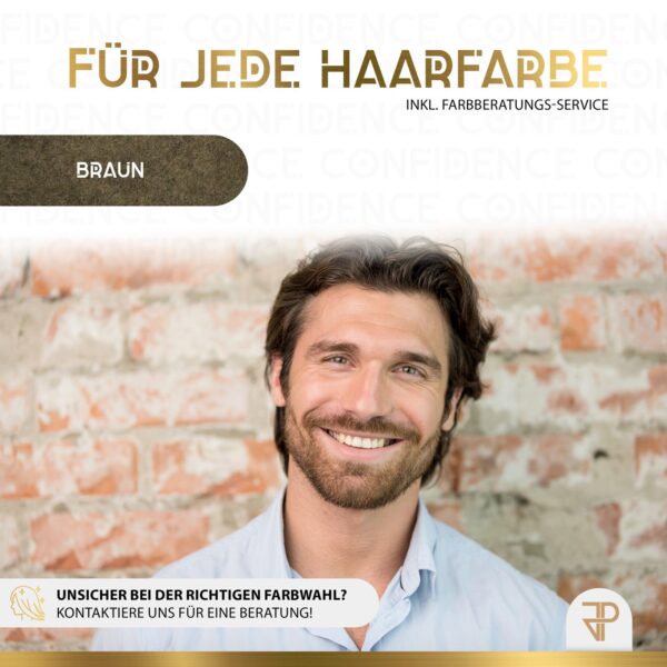 JP Confidence – Das Selbstvertrauen aus der Dose. Unser Streuhaar karschierte zuverlässig kahle Stellen auf deinem Kopf. Schnell, einfach, sicher. Endlich kannst du dich wieder wohl fühlen ohne an deine lichten Stellen zu denken. Egal ob im Job, beim Sport oder beim Feiern, JP Confidence ist dein Retter in der Not.